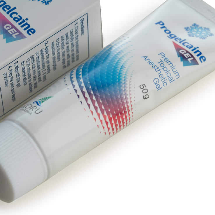 Progelcaine is an anesthetic gel used for various dermal procedures such as tattooing, needle injection, body piercing, laser tattoo removal, laser hair removal and other procedures where numbing is needed.